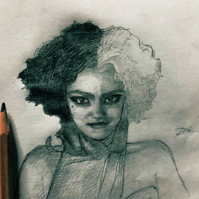 昨日と今日描いたクルエラの間😈🔥 一度濡れた紙に描いてるからふにゃふにゃ。 昨日からクルエラばかりですみません🙇🏼♂️
