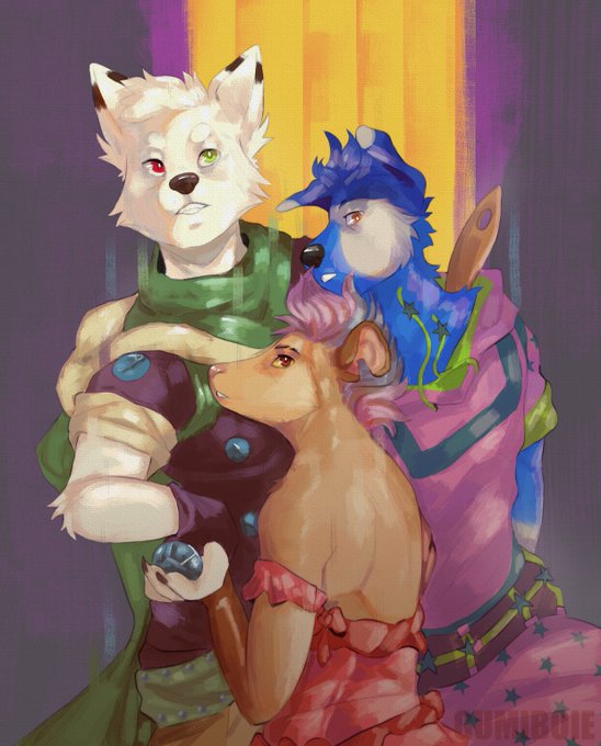 jojo pose, my friend as a gyro, me as a lucy and johnny @Howlee_RL