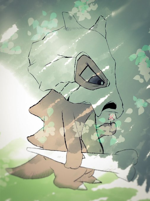 灰色一色もいいかと思ったけど、色つけるとまた雰囲気変わって良さげ。 #ポケモン #カラカラ #ポケモン絵描きさんと繋がりたい