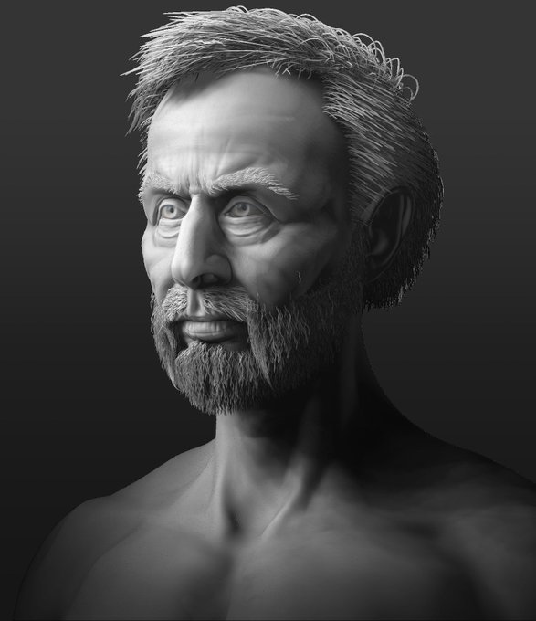 Had a bit of a play with fibre mesh for my Hunt: Showdown fan sculpt. Did that classic what would it look like as an aged picture - thing. I like it :) #sculpt #zbrush #gamedev #huntshowdown