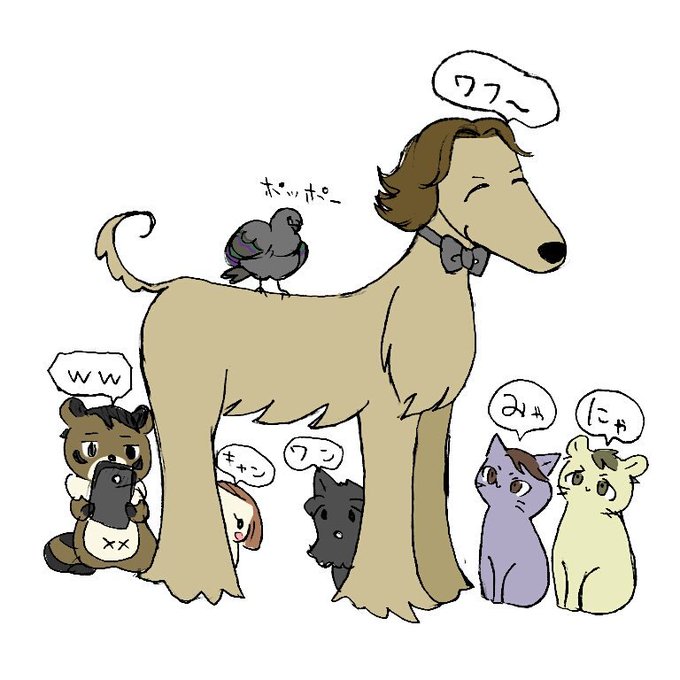 遅くなったけど犬利の日絵🐶🐶🐶 親(犬)バカ魔王様と甘利ワンコズ #イヌの日