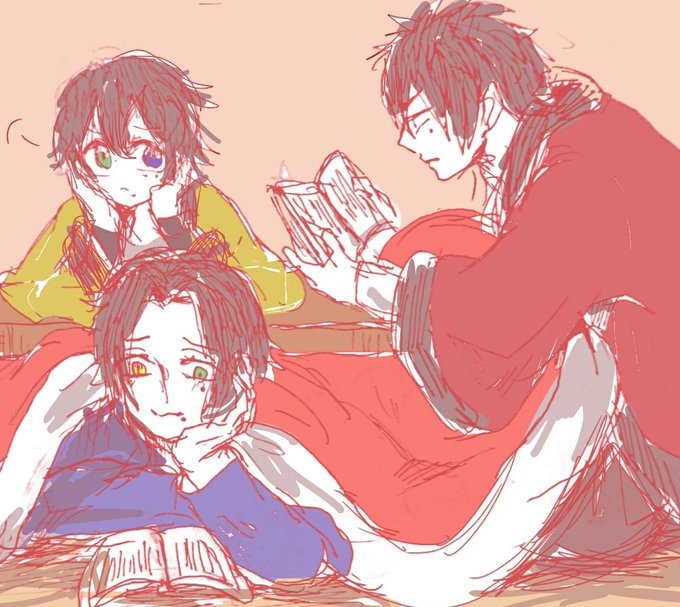ラノベを熱心に読む上二人と、読む気ないけど何となく部屋を去るのは嫌な三郎くん。山田三兄弟はお揃い色違いのはんてん着て!!!