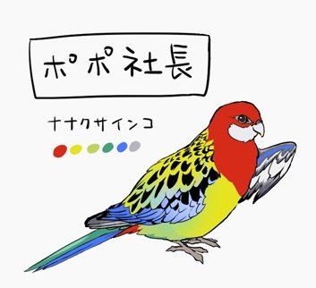 @sedia__sekisei 推しインコはアイコンのオリキャラ、ナナクサインコのポポ社長です!