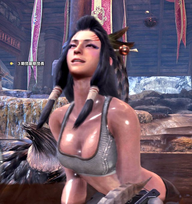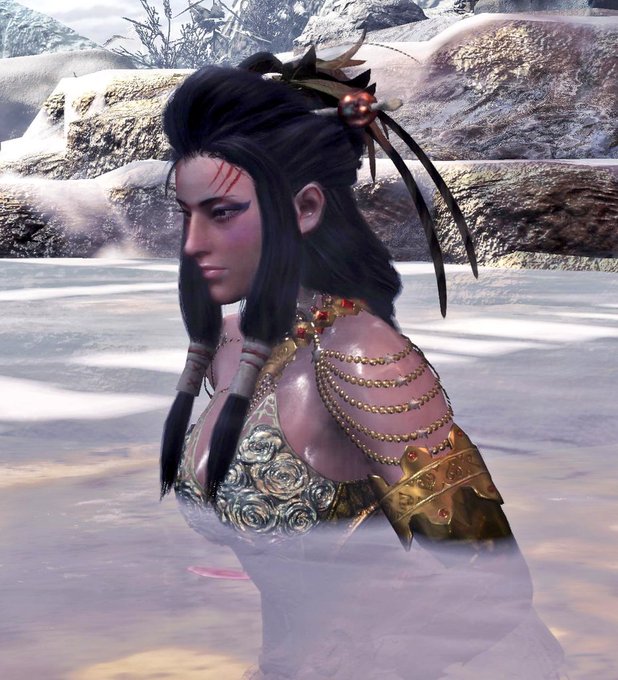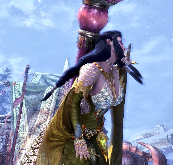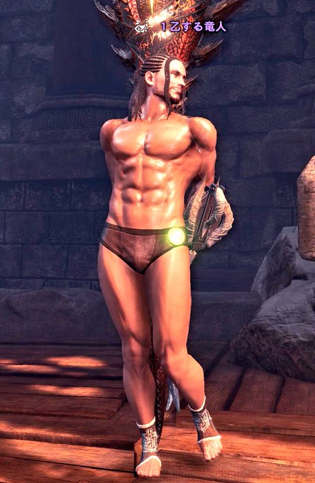 サブキャラの『1乙する竜人』のマッスル装備が完成したわ。 髪型も実装されたし、かなりそっくりに仕上がったわ☺ 予想外のイベント実装で助かったわ。 #MHWIB #竜人族