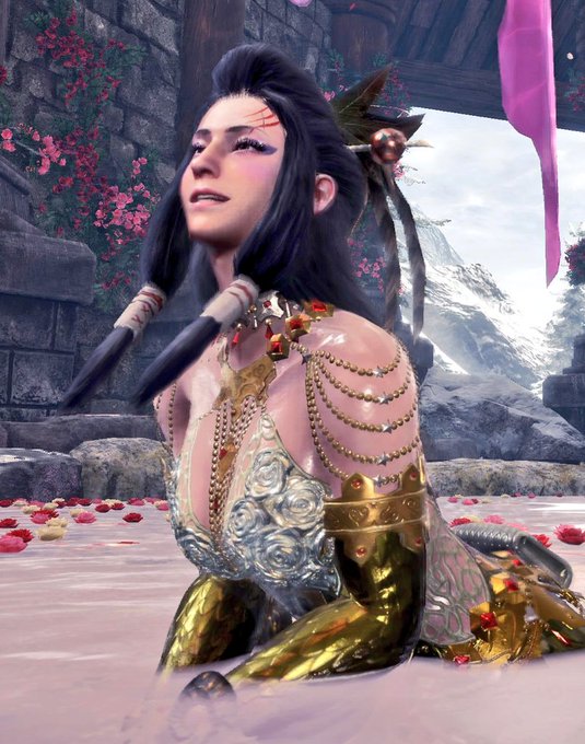 何とか初日で一式作れたわ。 ただですねぇ、脚装備をもう少しキツめにデザインしてですねぇ、生地の間から見えている太ももをもう少し『むちっ♡』とさせて欲しかったわねぇ。 分かるでしょ?むちっと感(●´ϖ`●) #歴戦王ネロミェール #MHWIB #MHWアイスボーン