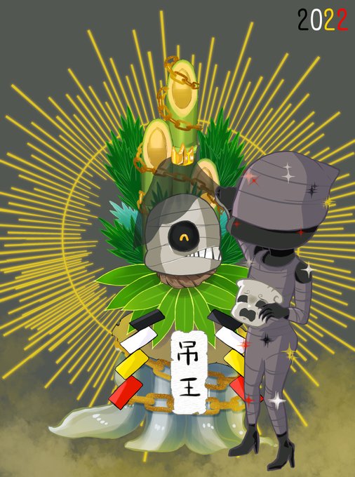 描初めの門松と化した王とおめで大使といつも事故ってる035さんです 改めまして今年もよろしくお願いします。