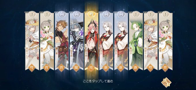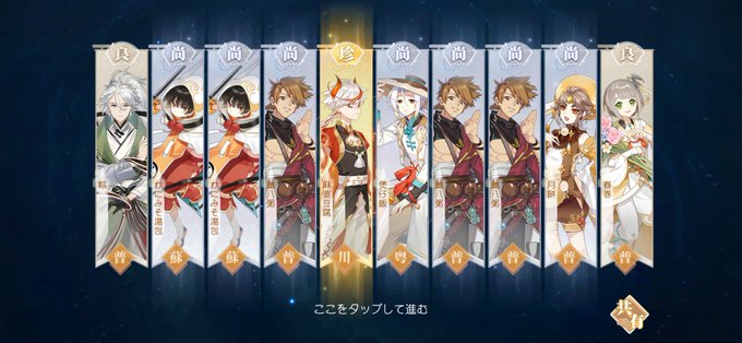 一品鍋が来てすり抜けか〜って思ったら大史も一緒に来てくれた〜!(人*´∀`)。*゚+ 風生チャレンジで怒涛のすり抜け祭りで来なかったけど、今回は30連で来たから良き!!! ……新しい珍品の子は来なかったけど、報酬に居たらいいなぁ〜
