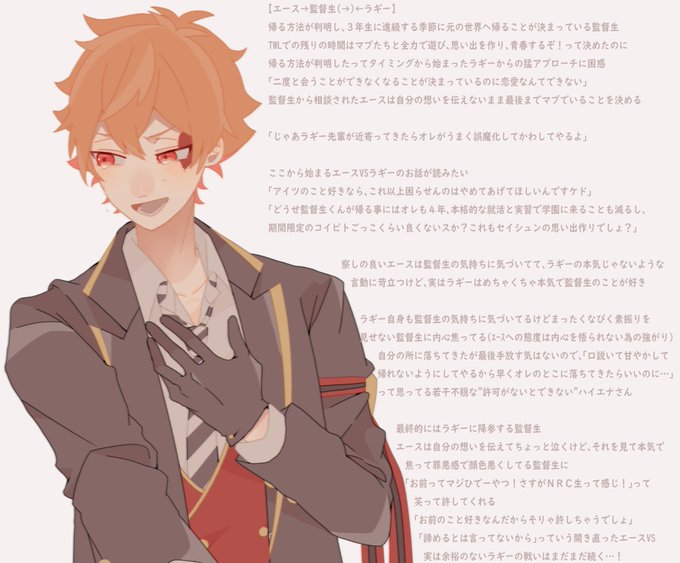 監を挟んでポラとラギがバチバチしてるのが好きだけど監を追い詰めるときだけ結託する2人もみたい ⚠️創作監督生 #twstプラス ♥️🌸🐆