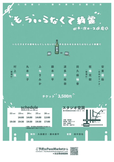 「#もういらなくて綺麗」観劇。上京して結婚プランナーの伯父の元で暮らすことになった娘が父親や先輩らと描く結婚や気持ちについての話。面白かった!久保磨介さんの本が素敵だしキャスティングがバッチリ!安東信介さん、ふなきみかさん村上弦さんら皆さん好演!田久保柚香さんが印象深い。お薦め!