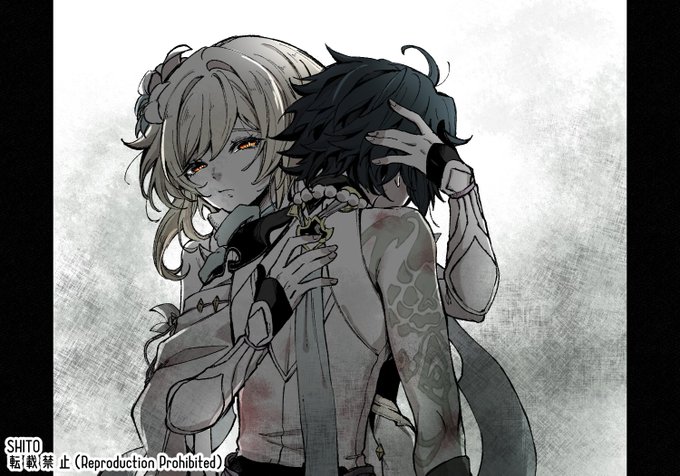 # リプで来た台詞で1コマ① 頂いた台詞「生きててえらい」 これは絶対に結ばれないタイプの蛍/魈。 2枚目は色々妄想した末に出来た副産物。