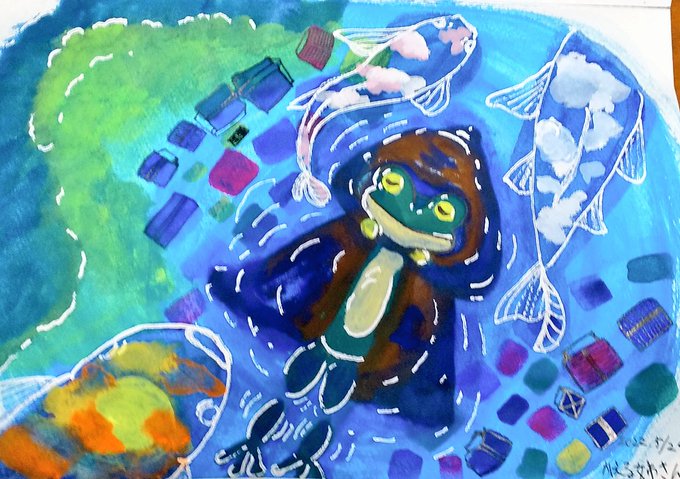 透析室の看護師さんと患者さんに癒しと楽しみを届ける為に蛙の旅人いつみが旅した所描いてます