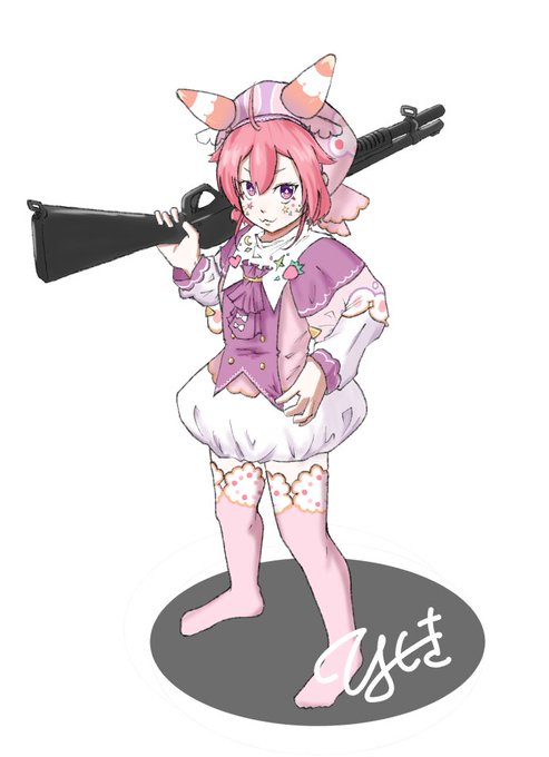 らくがき!! いちごちゃんポンプアクションだとグリップに手届かなさそう。 #いちごのあとりえ