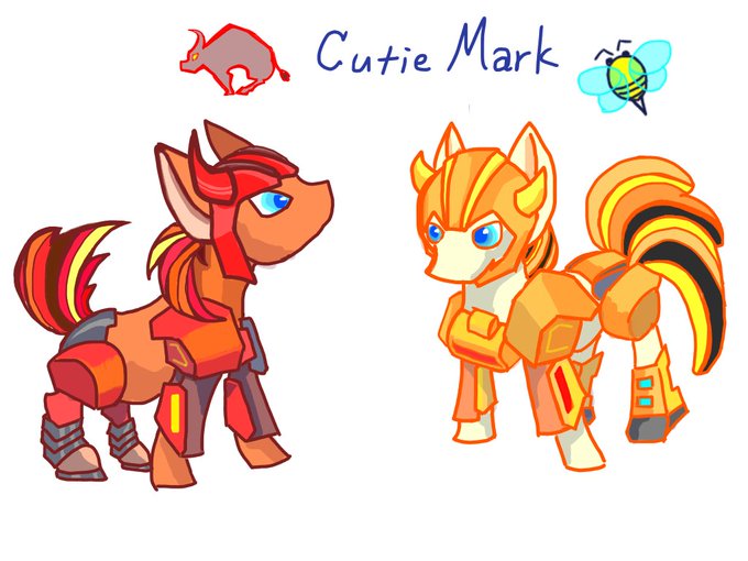 できた。 初代TFよりクリフとバンブルのマイリトルポニー風。 分かるでしょうか…。 ついでにキューティーマークも描いてみました。