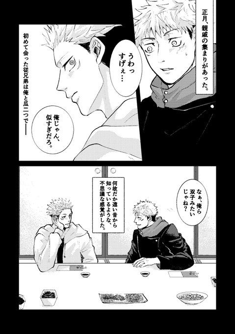 前にえちゃで描いたやつなんだけど、こういう関係性が好き出して… 宿虎の双子パロで、昔は虎の方がすくなすくな〜って感じだったのに、10年後は落ち着いちゃって、宿の方がかまってちゃんになってたら良いな〜という願望