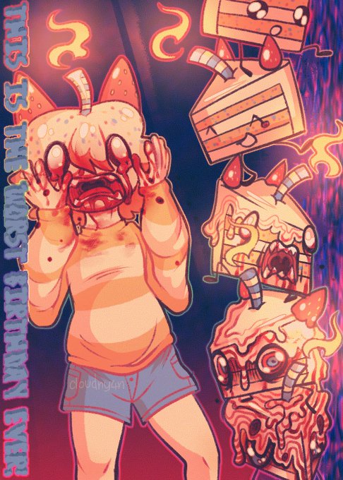 ( gore , blood ) "THIS IS THE WORST BIRTHDAY EVER!" a experimental art trade piece with @axetrax1 !!