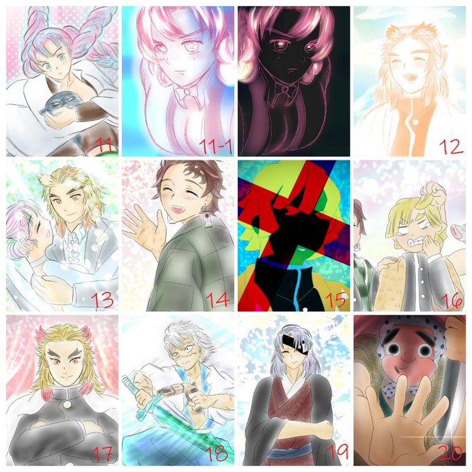 1日で6枚もお絵描きするなんて無茶したなぁ🤣もう絶対間に合わないと思って弱音ツイしそうでした(笑)でも⚡少年への愛を形にしたくて、一人一人に善逸の名前を呼んでもらいたかったのです~💕粗は探さないで下さい😂