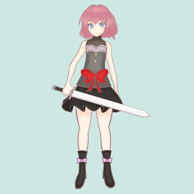 キャラデザをお願いしたキヨヒーさんに武具のデザインとか三面図とかも一緒にお願いしてたのだよねェ~!つゔさんによる全身図も改めて再掲しつつ、そっちの方も今の内に載せておこう