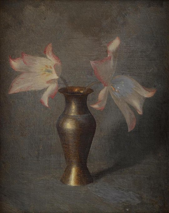 Fedor Ivanovich Zakharov (Russian, 1882-1968) Pair of tulips in a silver vase, n/d