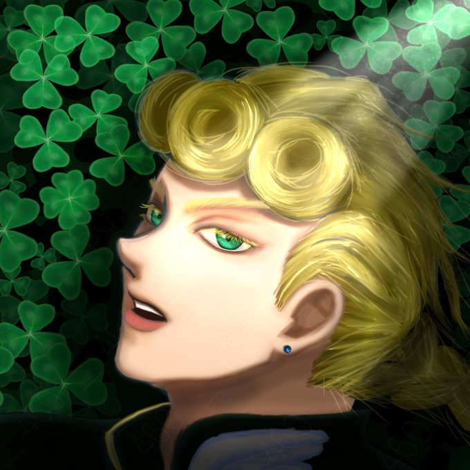 2枚目は四つ葉のクローバーを見つけたジョルノと🐞