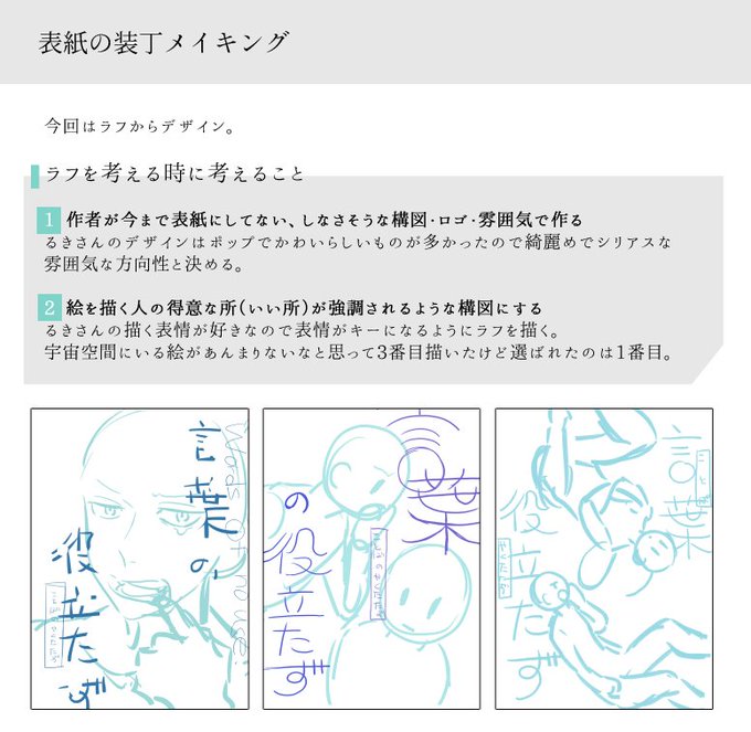 るきさんのふたかま本の装丁メイキングです。本の情報と徴収物はツリー