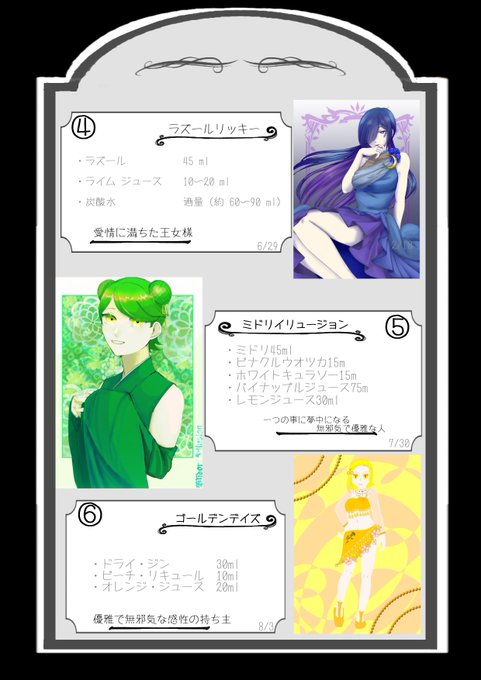 カクテルモチーフの誰デザ参加させていただきました!! 僕がデザインしたのはどれでしょうか!? リプにアンケはっつけるのでそちらよろしくおねがいします!!