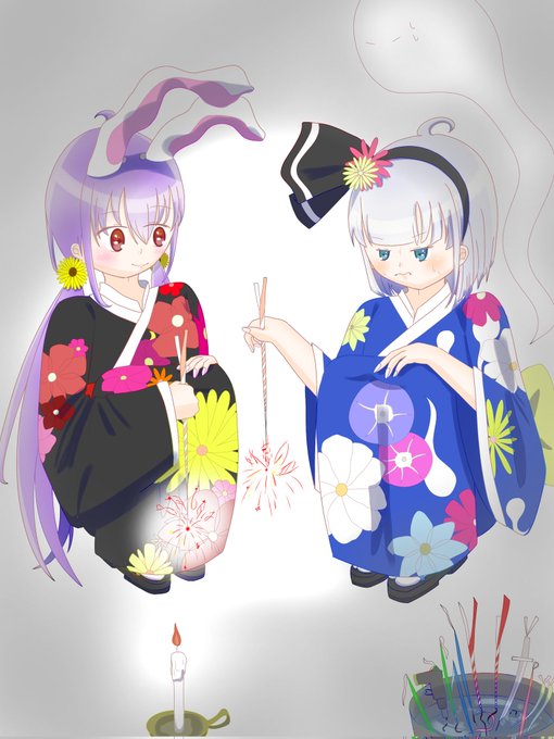 ラストの線香花火 #東方 #東方イラスト #妖夢 #魂魄妖夢 #鈴仙・優曇華院・イナバ #8月6日は妖夢の日