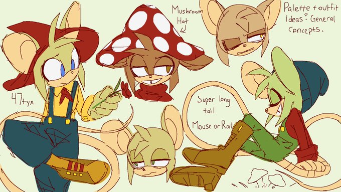 concepts for a goblincore inspired character. all i know is that she’s a mouse or rat. might make her green like the the lower right sketch-