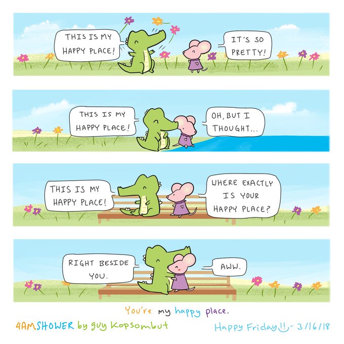 It’s a portable place. Today’s smile goal: find yours.🌷 If this comic helped you smile, pledge at https://t.co/PQ0Evb2BhV. For prints and commissions, email me at 4amshower@gmail.com :)