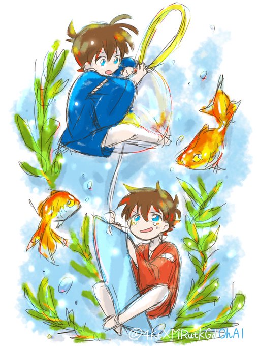 #コナンまじ快深夜の真剣制作60分一本勝負 お題 「風鈴」 作品形式 イラスト キャラ 工藤くんと黒羽くんです。 初参加です、どうぞよろしくお願いします。