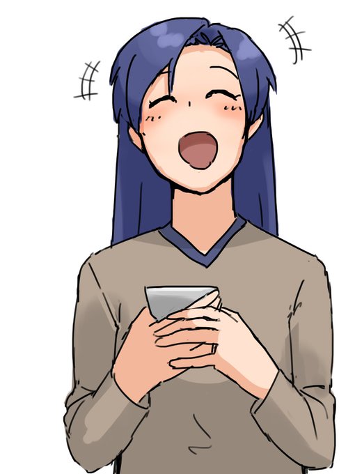 仕事が忙しくて全くご飯が食べられなかったのでコンビニで軽い食事を買い込んで事務所でいざ食べようかというときに、後ろからいおりんの持ってるサンドイッチを一口食べるまこっちゃん。(アンケート結果のキャラで描きました)