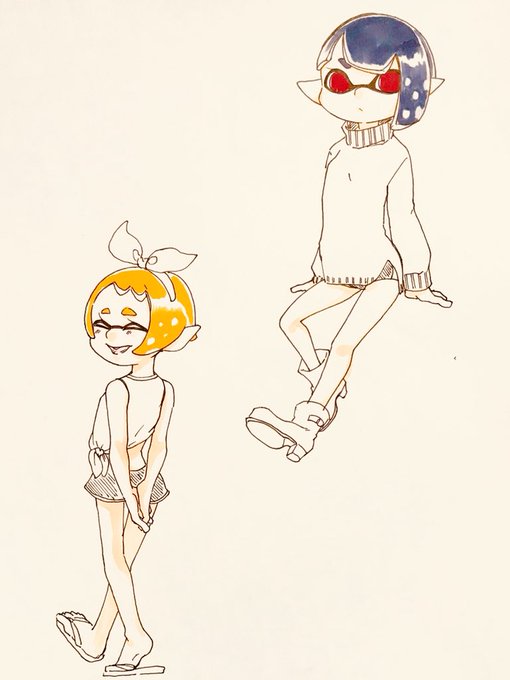#スプラトゥーン絵描きさんと繋がりたい #スプラトゥーン創作 もっとショートカットの子とかニット腹出しのギアとか欲しいです(・ω・`)
