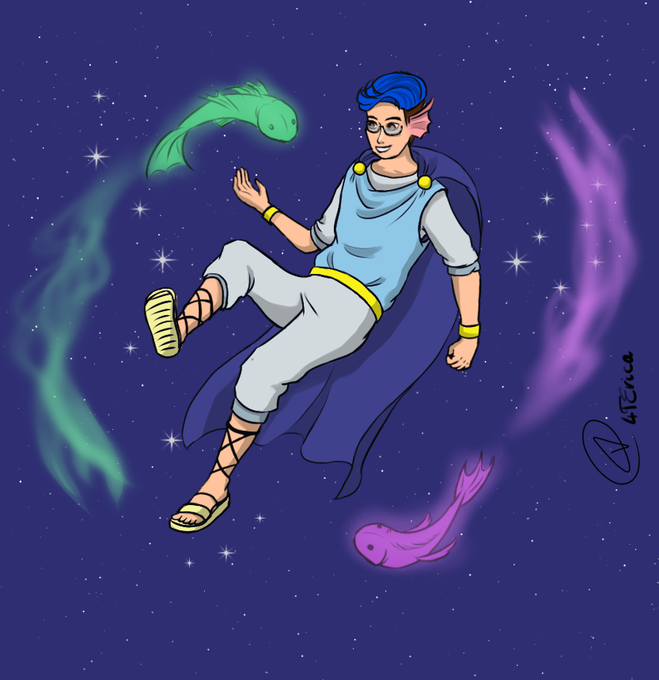 Drew me and my online friends in our Zodiac signs. Kinda want to make the chibi versions of them though...