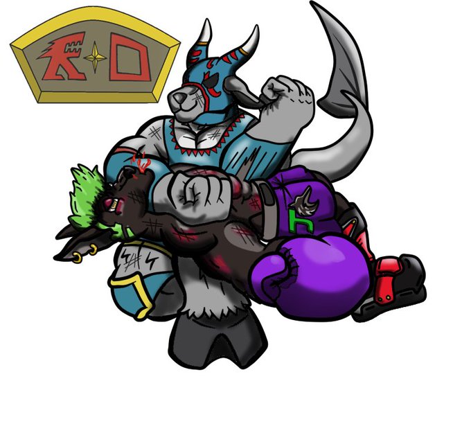 Newest commission for @Foxboxer3 featuring Argo vs @spiceseagoat. Thanks deeply for doing business. Looks like wrestling beat Boxing this time.