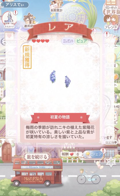 今届いてるのに気づいたけどログインボーナスの紫陽花が可愛い🥰