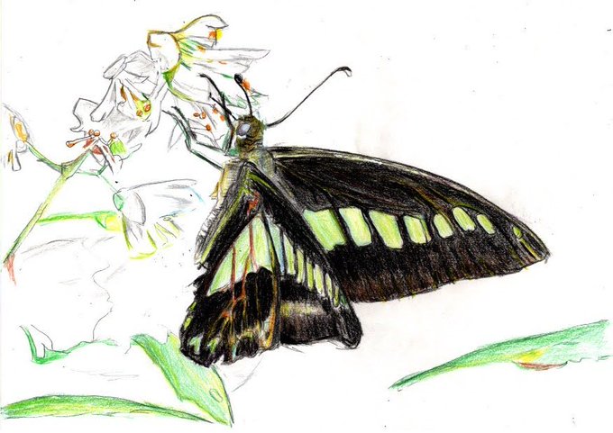 アオスジアゲハだと想いながら見て頂けると幸甚です。 #色鉛筆画 #みんなのSNSなんでも展示会2 #みんなでつくるSNS動物園展