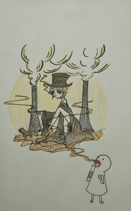 ちょっと前に暇だったからラジさけに何か絵のリクエストしてーってたのんだら田噛くんって言われたから描いたんだ。 寝てる間に平腹ちゃんにイタズラで金髪にさせられた田噛くん。