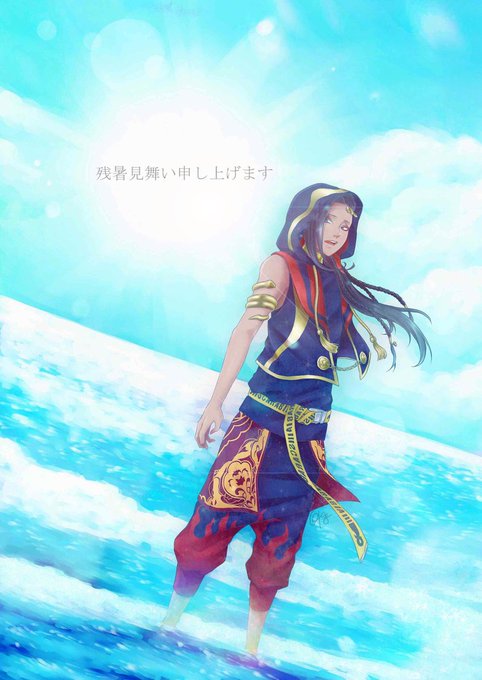 #twst_残暑見舞い 初企画参加!☺️ 残暑見舞い申し上げます。 キャラクター:ジャミで参加させていただきました!🐍 #twstファンアート #ツイステファンアート #ジャミル・バイパー