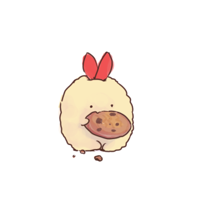 チョコチップのクッキーを食べるえびふらいのしっぽちゃん、と思って書いたのですが… そもそもすみっコぐらしさんはご飯を食べるのかなぁというぎもんです。