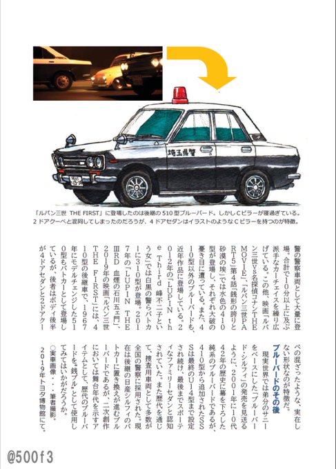 #銭誕祭2020 には間に合わないし、#風魔一族の陰謀33周年 にも当然ずれこんで何も新作が出せないので、12月13日に頒布した拙作「ルパンズ・カーズ」から、銭形警部のブルーバードの記事を掲載します。 こんなふうにぎっしり文字が詰まった本でした。美学3決まったので、近く新装版が出る予定です。