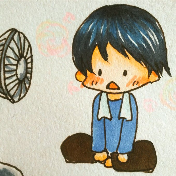 寒くなってきたので温泉3年組と先にあがって扇風機の風に当たる伊月くん的な。。。
