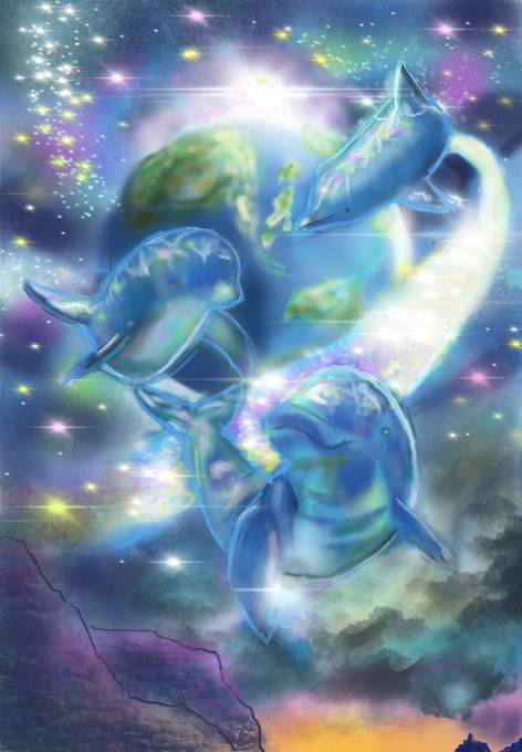 「神秘的イルカ」描きました!