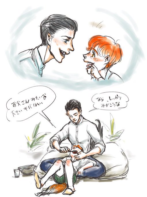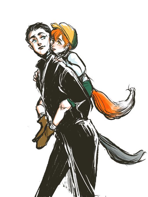 写真を漁っていたら、狐と狼が仲良くしている写真を見つけて萌えた。可愛い動物がまだ描けないから擬人化。