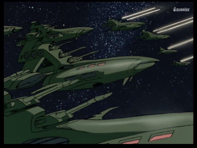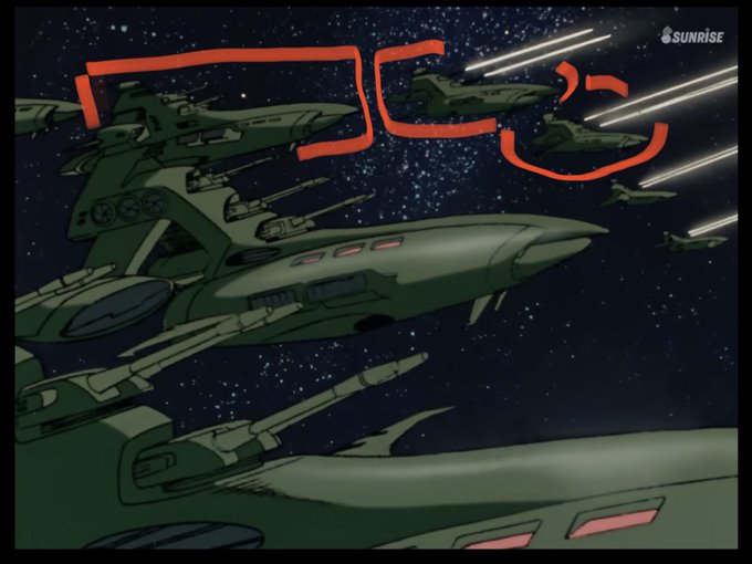 @jgdjgdjgd 実はその前にコロニーにムサイ級が艦砲の斉射をするシーンがあるのですが、砲塔が2門がムサイがいるのですよね… そしてコロニー落としのシーンでバズーカを持ってるザク よく見ると連邦のハイパー・バズーカの様な形状に見えて 核バズーカなのかなと