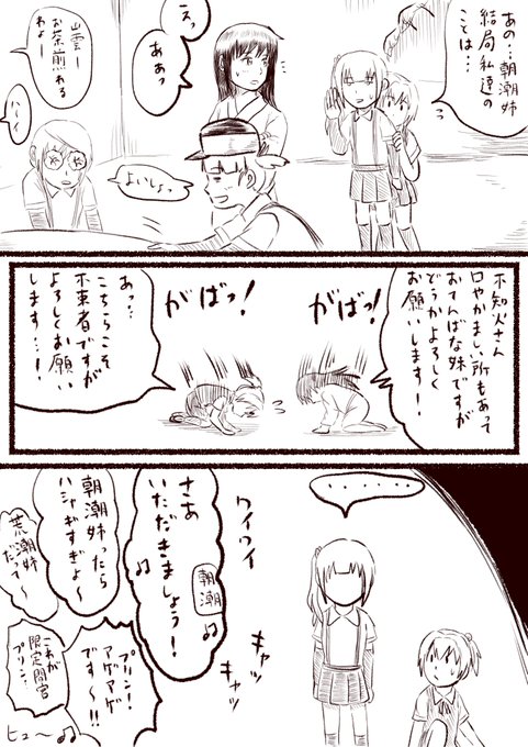 @7188yi ラスト。後はオマケをちょっと描いてモーメントにまとめます。 気が向いたら逆Verの「陽炎型に挨拶に行くしらすみ」も描きたいなぁ