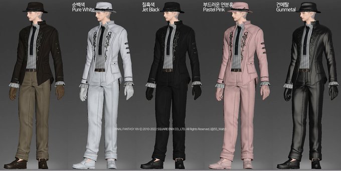 v 6.25 - Noir Attire (느와르/누아르 의상) 남레젠 미리보기. 새로 추가된 신규 던전 컨텐츠의 토큰으로 교환 가능합니다. (1~4인짜리 일반 레벨 던전을 통해서도 꾸준히 돌면 어렵지 않게 획득 가능합니다) #ff14