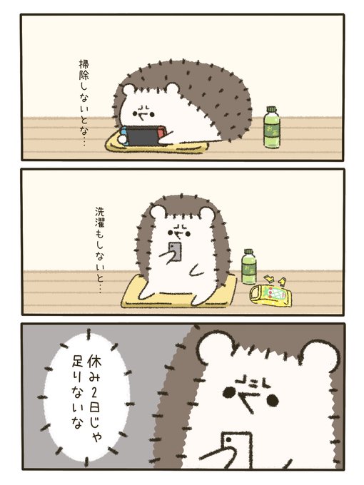 倍は休みたいハリネズミ #ゆるいイラスト #漫画 #ハリネズミ #とにかく眠たいハリネズミくん