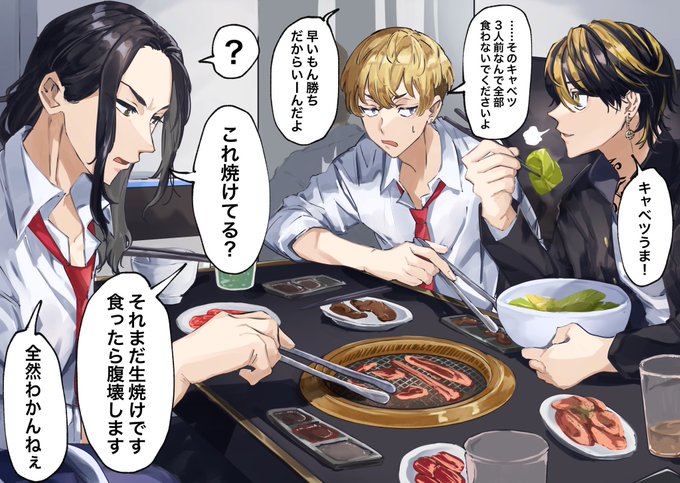 焼肉バジトリオ/仲良しif 肉の焼き加減ずっと分からないバジさん