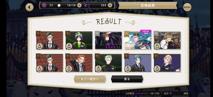 ねぇwwwwwwwww ジャミルさん!リドルくんのハロウィンピックアップガチャですよ! なんで今来たの!嬉しいけど😂😂 10連でラギブチもきたのでシルバーまでお休みします😌
