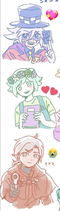 やもう全員可愛い?!かわいいから全員見て欲しいけどとりあえずコレ見て?!? 現在私の心を掻き乱す推し三銃士全員描いてもらっちゃって供給過多ヒィィ〜〜ッッ イケメンジョさんもキュートバジも最高最高 レドバなんて2人も画面にいて現実??ってなったもんね吸死2期1月放送よろしくお願いしま