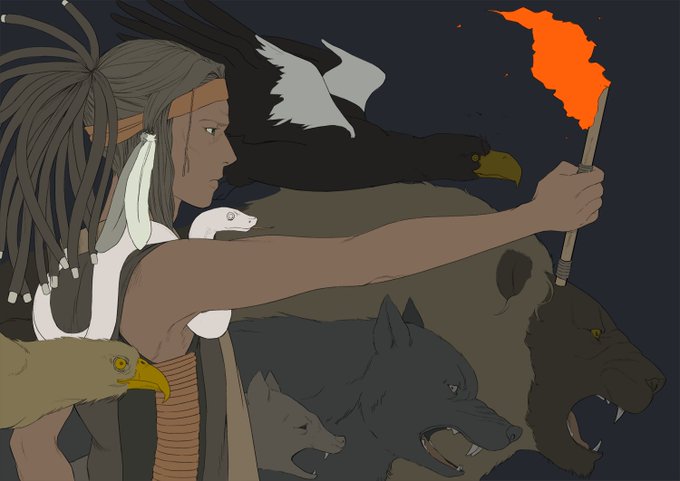 動物を描くのが下手すぎるので練習もかねて。ゴツゴツした男性と炎が描けて楽しかった!